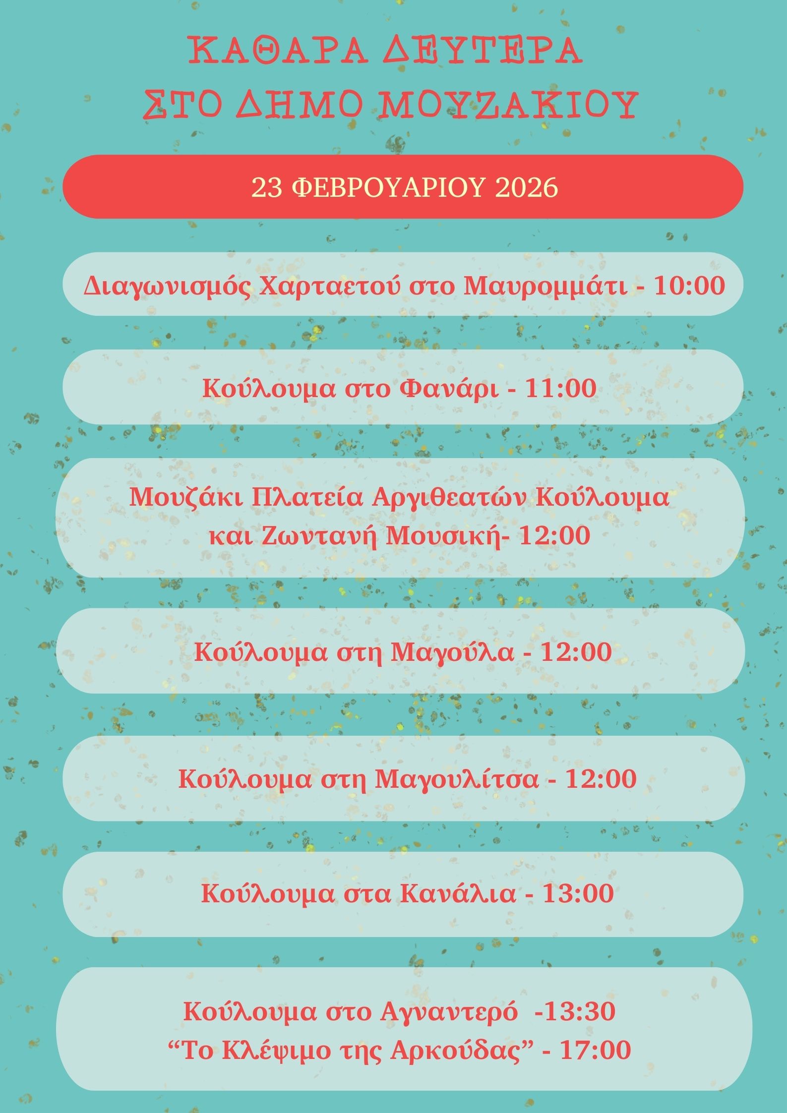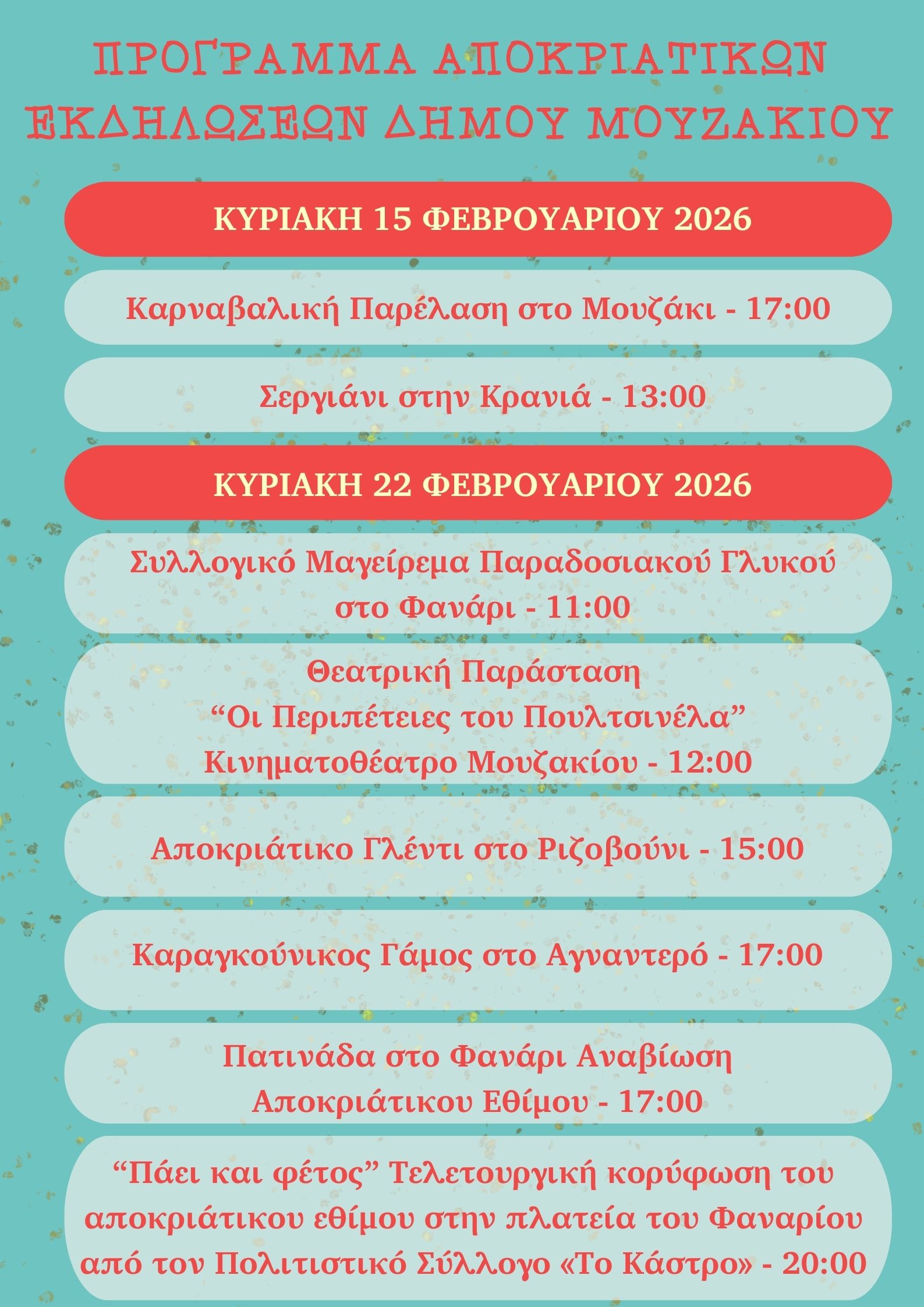 Προκειμένου η πληροφορία να φτάσει σε κάθε σπίτι, τα φυλλάδια έχουν ήδη αρχίσει να μοιράζονται ενδεικτικά σε λογαριασμούς ύδρευσης της ΔΕΥΑ Μουζακίου (ΔΕΥΑΜ) ενώ η διανομή θα συνεχιστεί σταδιακά σε όλες τις Δημοτικές Κοινότητες. Παράλληλα, το ενημερωτικό υλικό είναι διαθέσιμο προς κάθε ενδιαφερόμενο τόσο στο Δημαρχείο όσο και στα ΚΕΠ του Δήμου Μουζακίου.