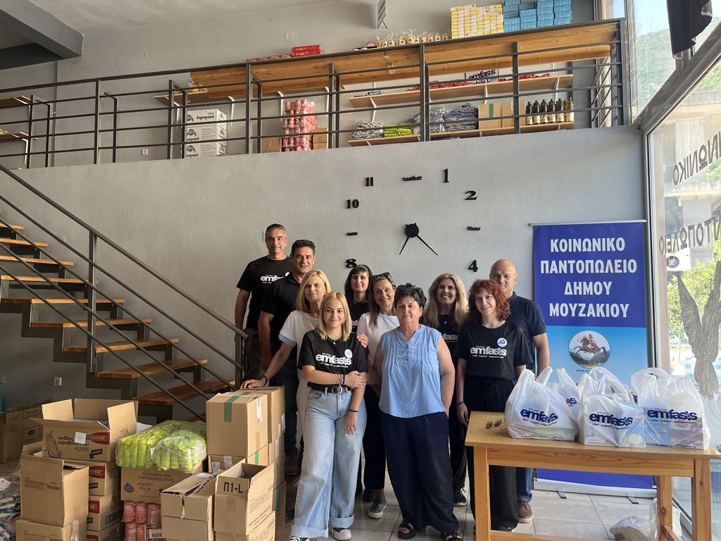 ΣΤΟ ΚΟΙΝΩΝΙΚΟ ΠΑΝΤΟΠΩΛΕΙΟ ΜΟΥΖΑΚΙΟΥ ΠΑΡΕΔΩΣΑΝ ΤΡΟΦΙΜΑ ΚΑΙ ΕΙΔΗ ΠΡΩΤΗΣ ΑΝΑΓΚΗΣ Η ΑΜΚΕ EMFASIS NON-PROFIT ΚΑΙ Η ΕΤΑΙΡΕΙΑ ELIN OIL